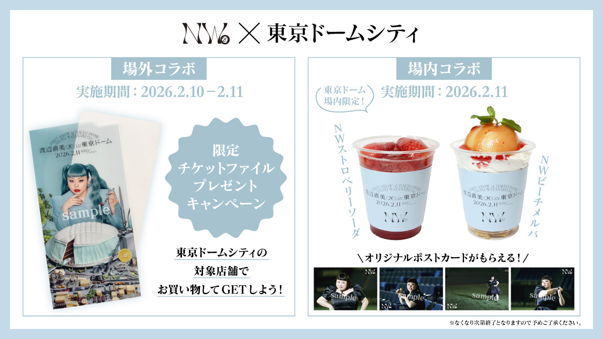 東京ドームシティ内のショップ&レストランで1,500円(税込)以上お買い物いただいた方に渡辺直美 (20) in 東京ドーム限定チケットファイルをプレゼントいたします。